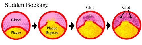 In these cases there is often no warning because prior to the rupture there was good blood flow through the artery. In addition, because the blockage happened so suddenly there are usually no collateral arteries. For this reason the damage may be more severe, although the extent of damage also depends on the size of the artery that was blocked.
