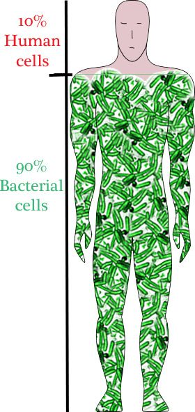 Its been known for a long time that an astounding 90% of the cells in and on our bodies don't belong to us at all. Most of what we consider "us" is really bacterial cells. Our own cells only make up a small percentage of the total. We call this collection of bacteria living in and on our body the Microbiome which is often shortened to the biome. A recent project called the Human Biome Project used new genetic tools to examine these major cohabitants of our bodies in a way that was never possible before. The results were surprising. What they found was that each of our bodies is inhabited by at least a 1,000 different species of bacteria and possibly many more. They also discovered that the type and amount of bacteria each person carries are so specific that a given person's microbiome might be as unique as a set of fingerprints.
