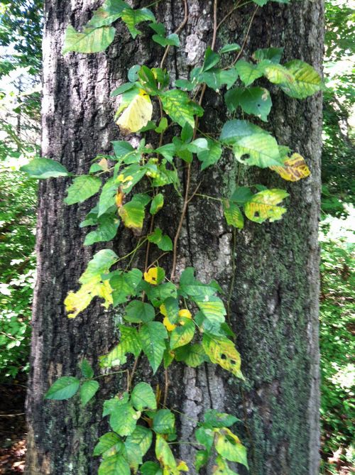 Poison Ivy can exist in different forms from small sprigs hiding among your bushes or in the grass to vines several inches thick climbing your trees. The smaller plants can be very difficult to see. If this is a concern it can be helpful to wear long sleeves and long pants to reduce the risk of exposure. Be careful to wash the clothes well afterward because even indirect contact with oil that got on the clothes can cause a rash. The oil is very stable and can remain active on an unwashed surface for many years. Dogs and cats can carry the oil on their fur if they come in contact with the plants. Unless the animal is washed the oil can remain there for a very long time and contact with the oil can cause repeated reactions to the pet owner. If one or more members of a household develop a poison ivy rash without any known contact it may be a good idea to bathe all household pets that have exposure to the outdoors even if they only go for an occasional walk outside.