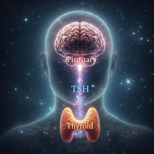 The pituitary gland sits in the skull just under the brain. It is sort of the master gland. It monitors other glands. If the are producing more of their particular hormone than the body needs it reduces the amount of stimulation it sends to that gland. If they are not producing enough then it increases the stimulation to that gland. In the case of the thyroid gland, if it's not making enough T4 and T3 then the pituitary gland sends out more TSH. If its producing too much thyroid hormone then the pituitary reduces the amount of TSH.